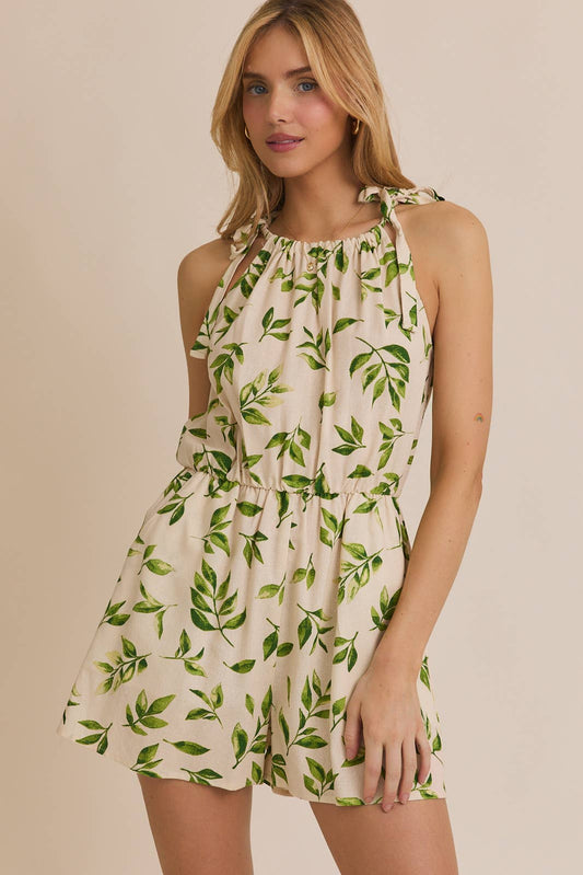 Halter Tie Leaf Print Romper