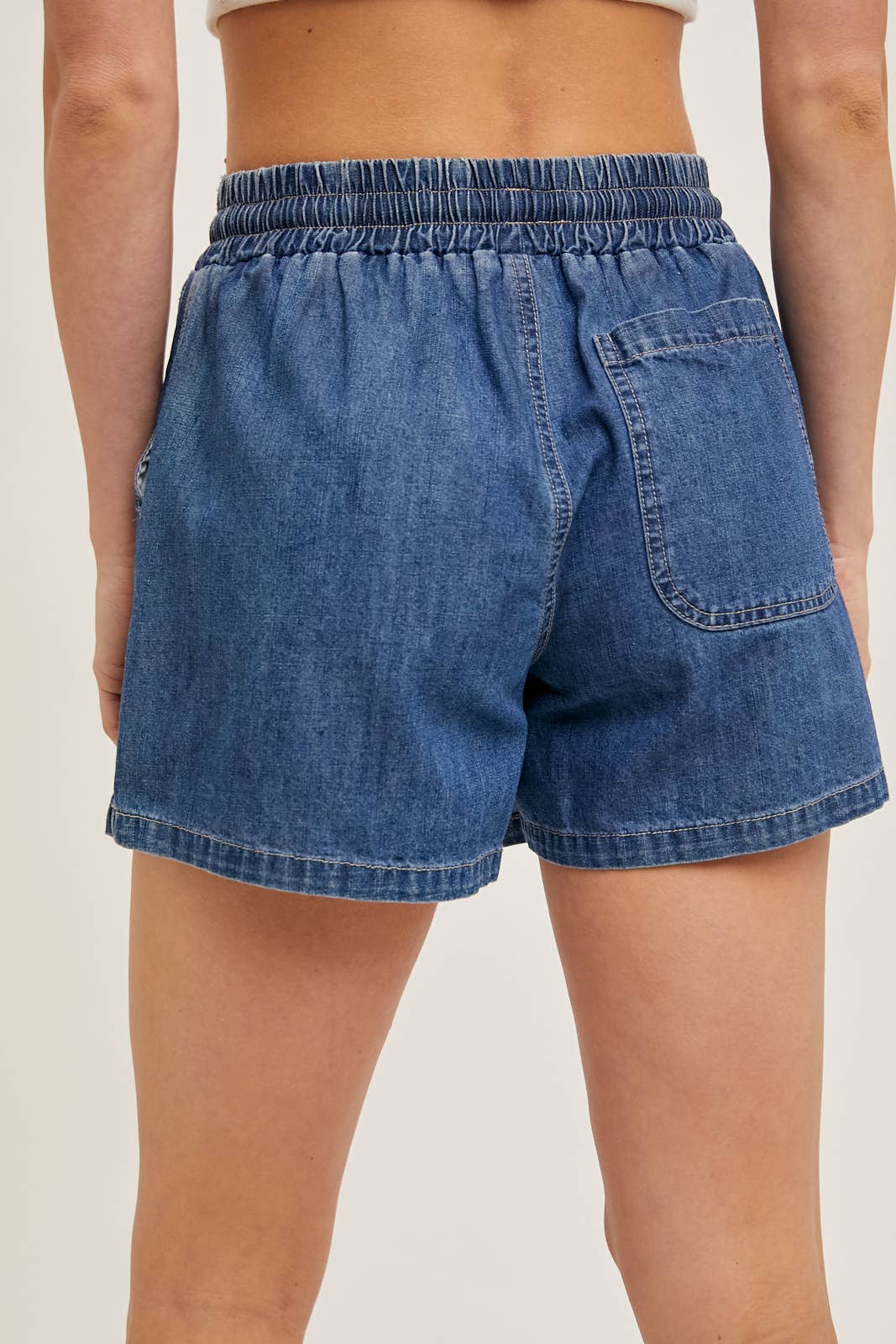 The denim drawstring skorts with pockets are a versatile and stylish addition to any casual wardrobe. Featuring the comfort of shorts with the appearance of a skirt, these skorts offer the best of both worlds. Made from durable denim fabric, they provide a classic look that pairs well with a variety of tops, from casual tees to dressier blouses. The drawstring waist allows for a customizable fit, while the pockets add functionality and convenience. Whether for a day of errands or a casual outing with friends, these denim skorts are a practical and fashionable choice.