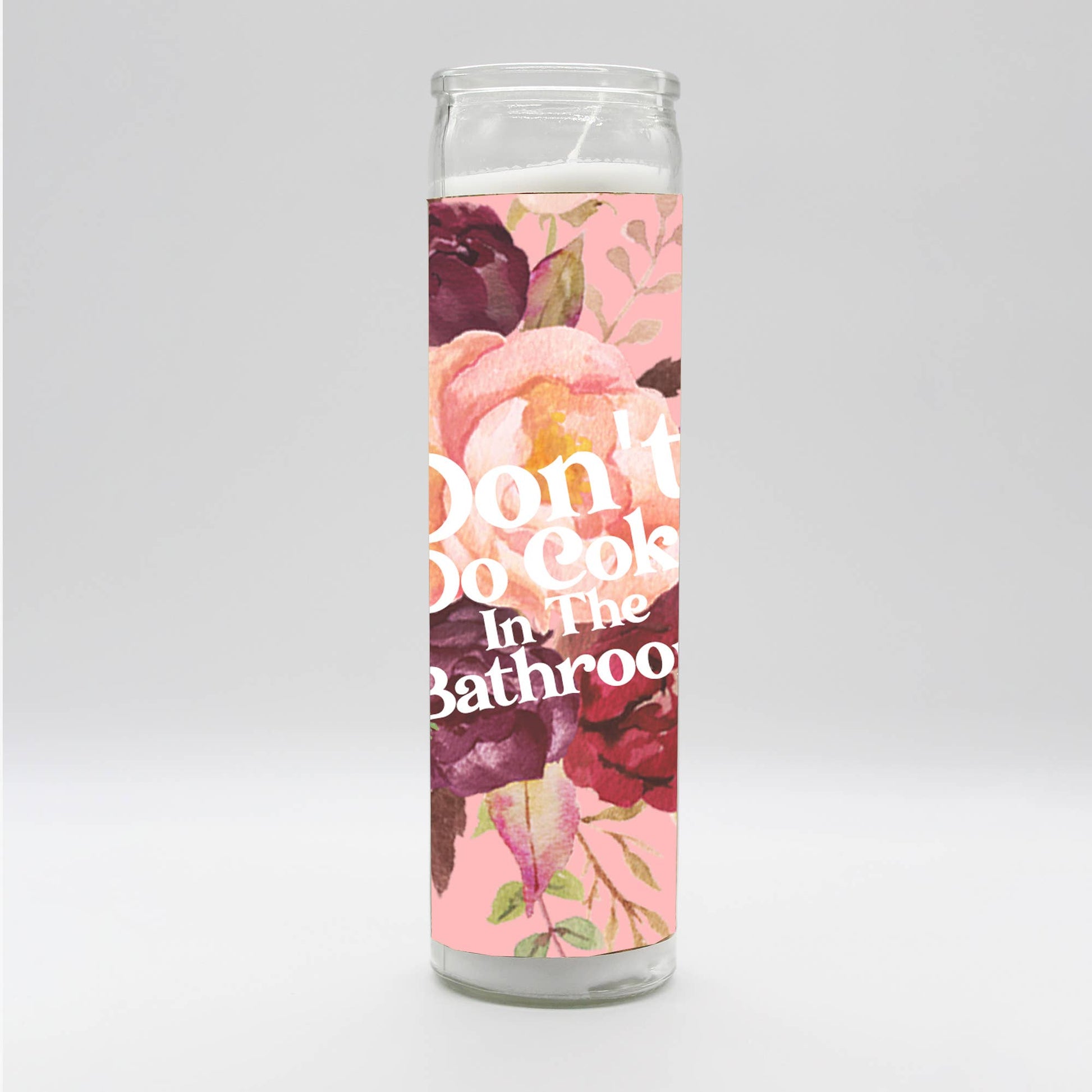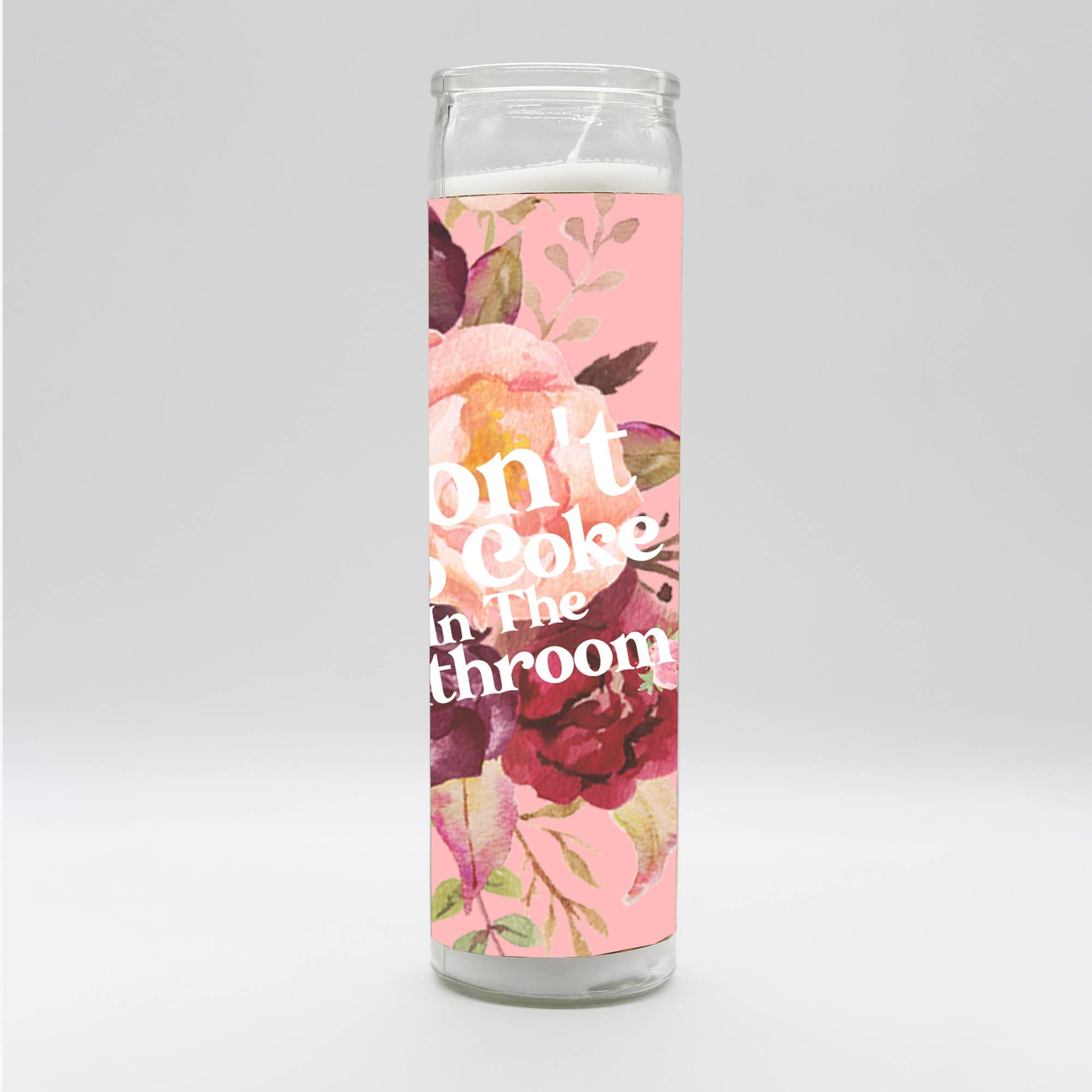 Tall white candle, hand poured in Mexico, design and assembled in the USA. Candle is unscented.