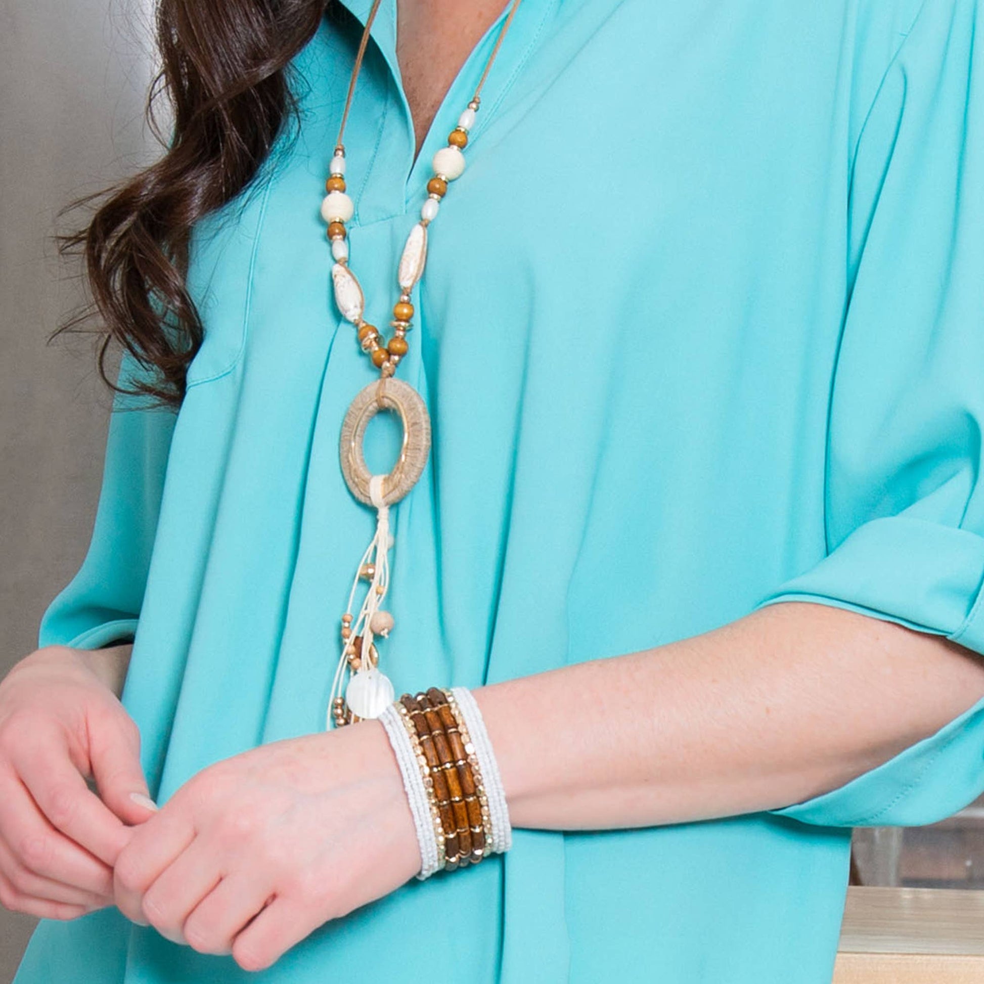The perfect statement! The Ellison Wood and Bead Coil Bracelet features a stunning array of multi-colored wood beads and seed beads to create a glamorous look. This stretch bracelet is perfect for every day wear or special occasions. This stretch bracelet is sized to fit most wrists. Our bracelets are perfect for any age range and would make beautiful gift for any occasion and easily accentuates any style. Nickel-free, lead-free, cadmium-free and is safe for sensitive skin. Perfect for all day wear!