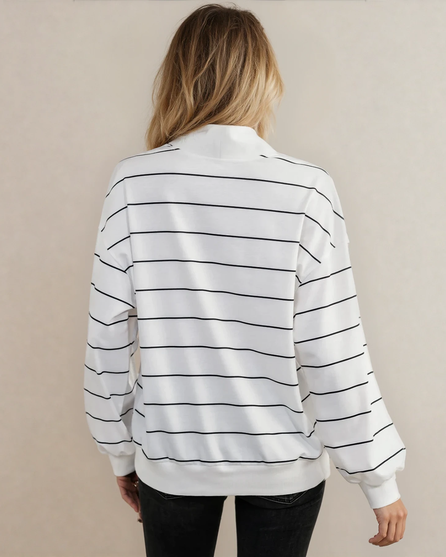 The V-neck flatters the neckline, while drop sleeves ensure a relaxed, comfortable fit. The subtle stripes bring a modern touch to a classic white top. The front zipper adds style and lets you adjust the neckline for versatile looks.