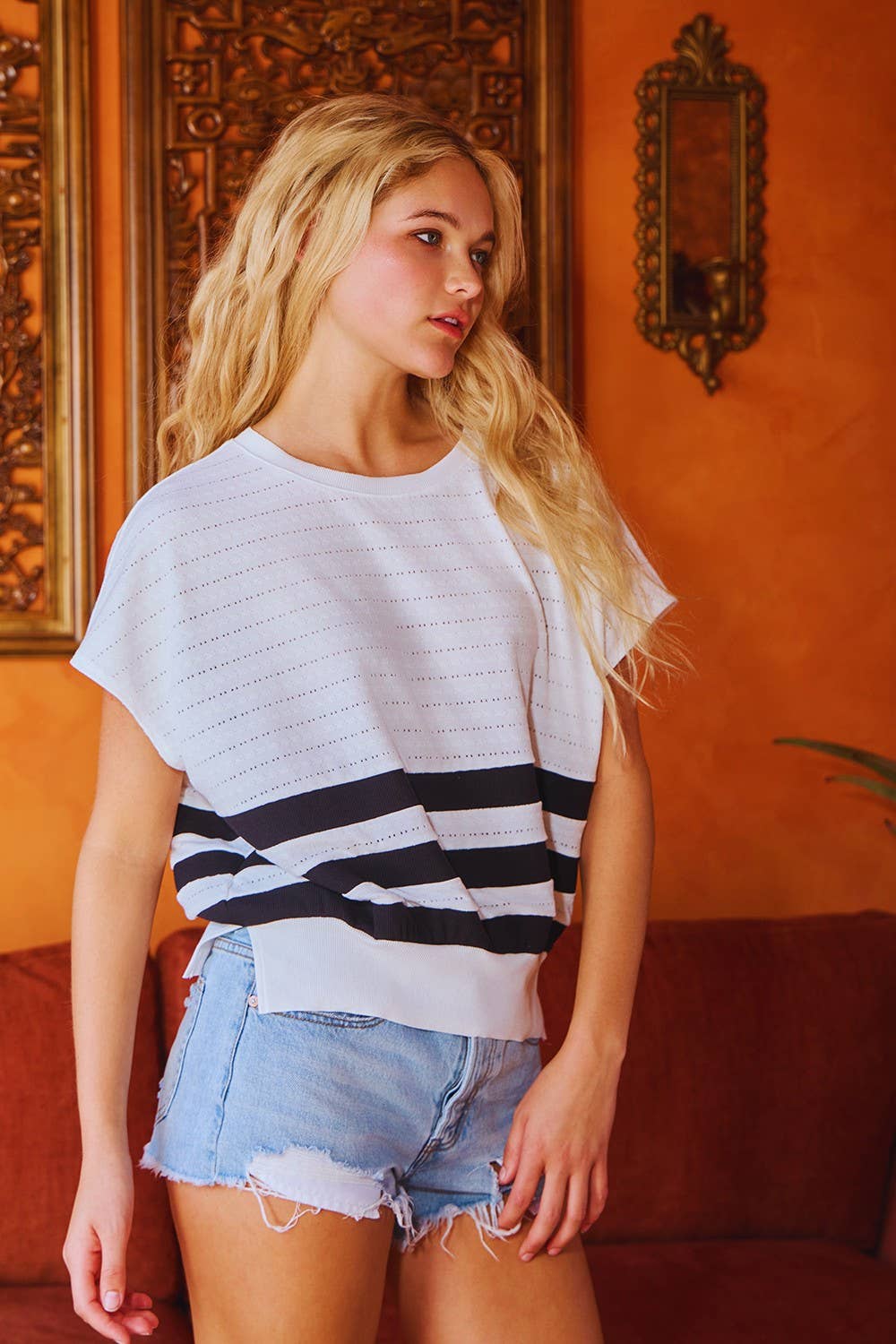 Pointelle Fabric Drop Shoulder Top