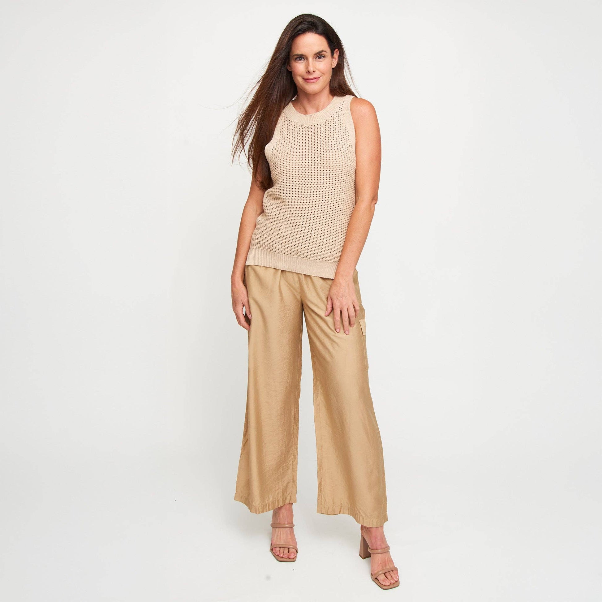 Classic comfort meets modern texture in the Mira Sweater Knit Tank Top — a timeless staple designed for effortless layering and everyday versatility. Crafted from 100% cotton sweater knit, this breathable, medium-weight top features a beautifully open knit pattern that adds depth and dimension to your look. The sleeveless design and side slits create a flattering, easy silhouette, while the ribbed neckline and hem provide a refined finish that holds its shape wear after wear. Perfect for pairing with jeans, skirts, or linen trousers, the Mira tank transitions seamlessly from work to weekend. Available in three essential shades — Mojave Desert offers a soft neutral tone. Whether layered under a blazer or worn solo, this tank combines polish and comfort in one chic piece.
